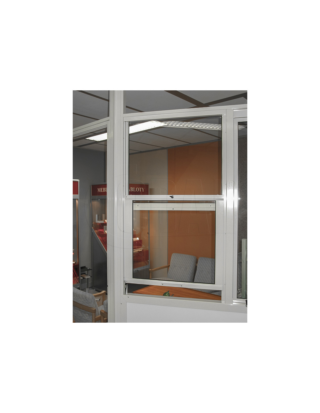 Cashier windows made on an aluminium profile with VSG 33.1 (6.4 mm) glass. The window can be slid both vertically and horizontally. Lifting window weight up to 7kg - without actuator. Larger windows can be made with an actuator.